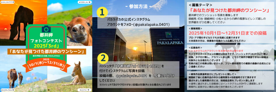 ②ハッシュタグ 「#都井岬フォトコンテスト2025」 を付けてInstagramに投稿