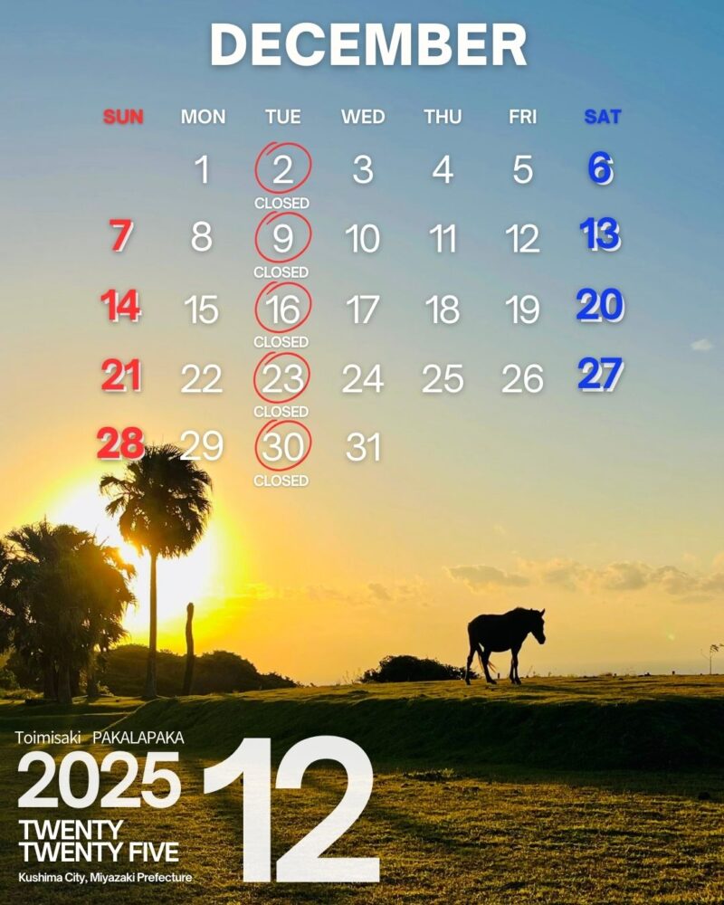 12月は下記の休館日以外は営業致します